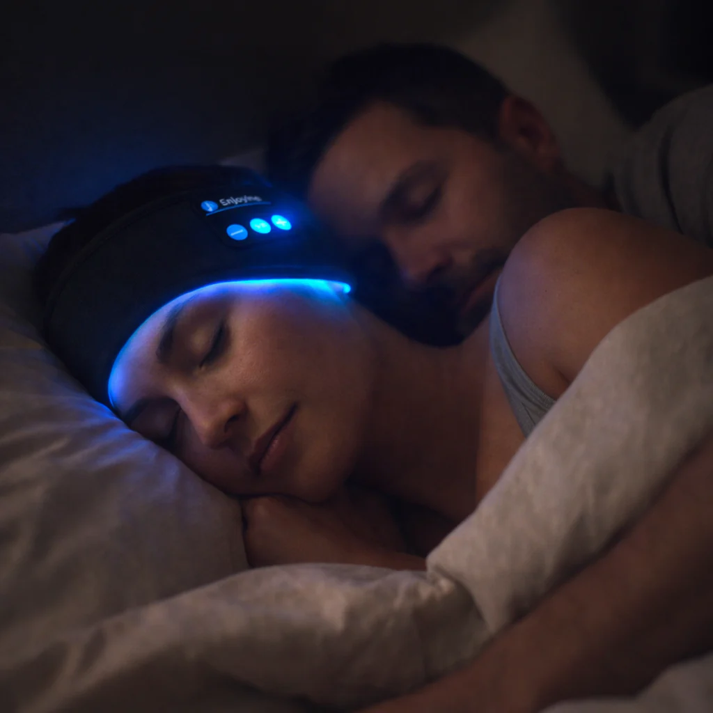 Ao contrário dos auscultadores volumosos ou desconfortáveis, o Rylaro™ utiliza altifalantes ultrafinos envoltos num tecido macio e respirável. Mude de posição, durma de lado: sem pressão, sem dor, sem dores de cabeça ao acordar.