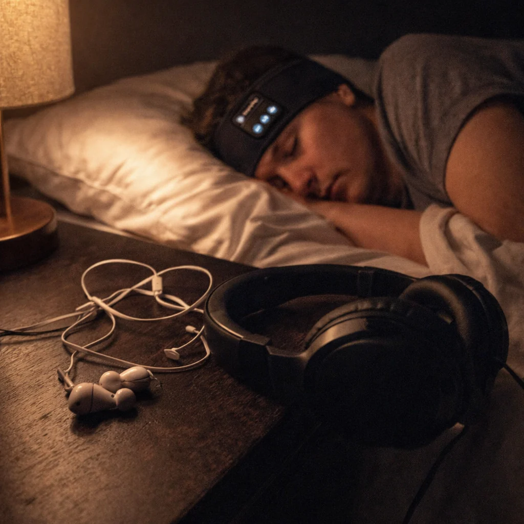 Já experimentou os auscultadores «para dormir». Já tentou usar auscultadores clássicos na cama. Nada funciona quando dorme de lado. O Rylaro™ é diferente: tão fino que nem se nota, tão confortável que se esquece que o está a usar.